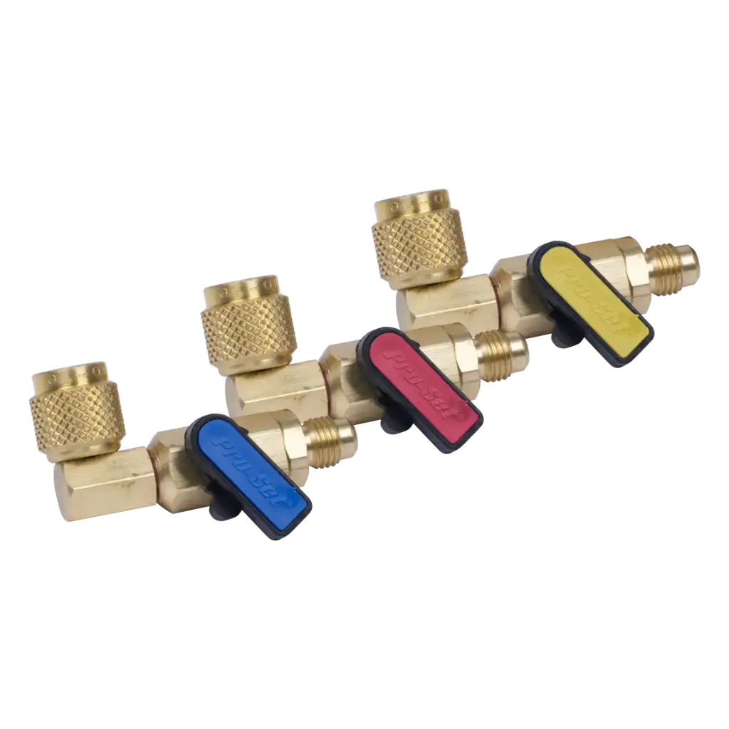 This 3-pack ball valve set includes 1/4″ SAE male x 1/4″ SAE female ball valves along with a 90° 1/4″ SAE female ball valve, offering added flexibility for straight and angled connections in tight spaces. Each valve is engineered for reliability, featuring an oversized chrome ball that ensures smooth operation and non-restrictive refrigerant flow.