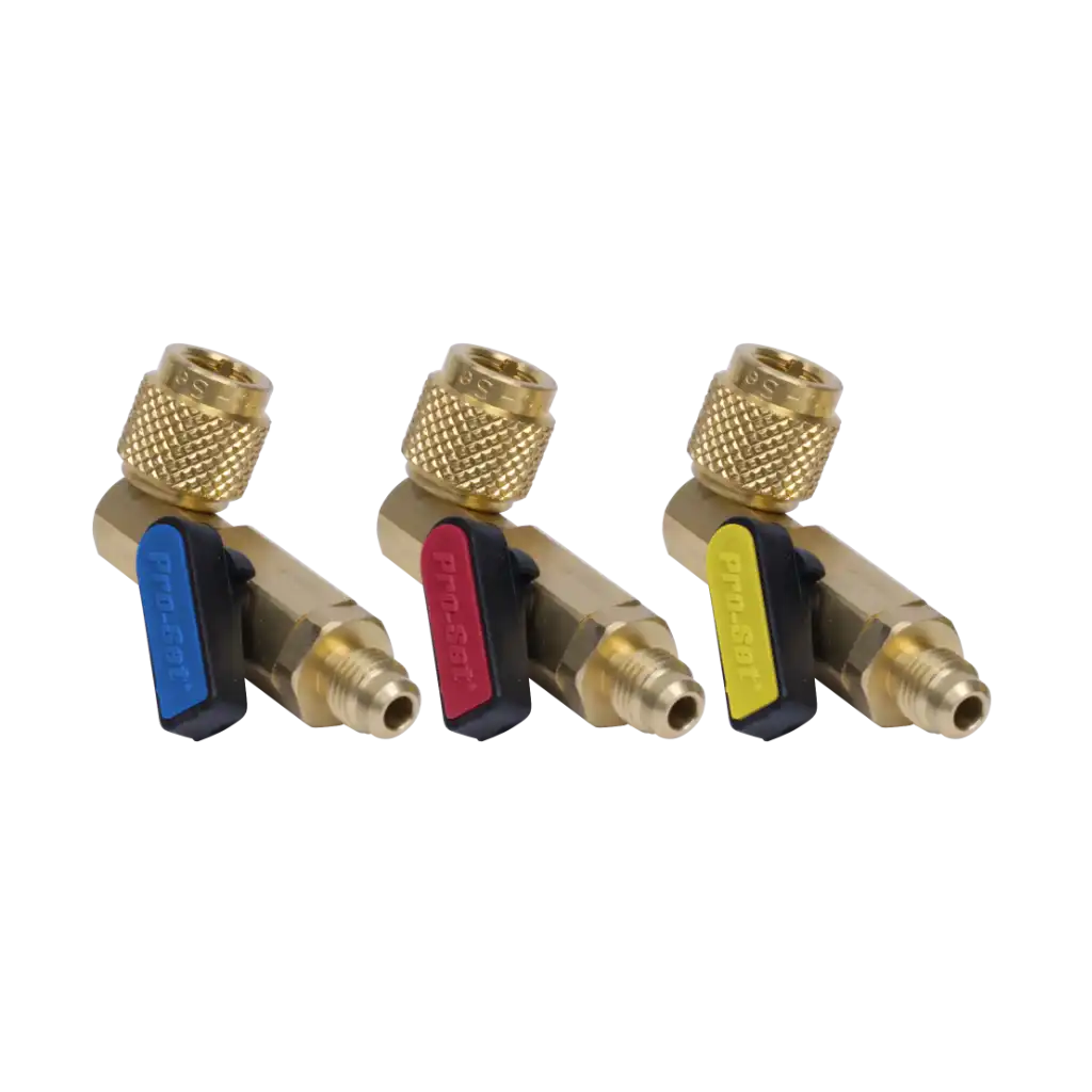 The Pro-Set® BV903 adapter ball valves are premium, technician-focused accessories designed to add positive shut-off control to existing HVAC/R hoses. By fitting these ball valves directly onto standard hose connections, technicians can minimise refrigerant loss during service and support compliance with EPA regulations, helping create cleaner and more efficient workflows.