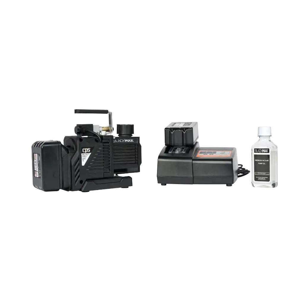 Designed for servicing split systems, domestic and small commercial refrigeration, automotive AC as well as sites where power supply is not available to use, this dual stage cordless vacuum pump comes comes standard with an integrated solenoid valve that prevents oils cross-contamination when the battery runs out, it comes as skin only and can be used with the CPS 6.0Ah 18v battery that will give you up to 60 minute run time.